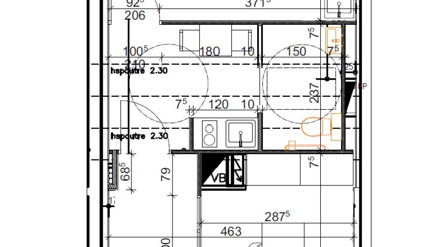 - un couloir distribuant une cuisinette aménagée/équipée et un sanitaire PMR