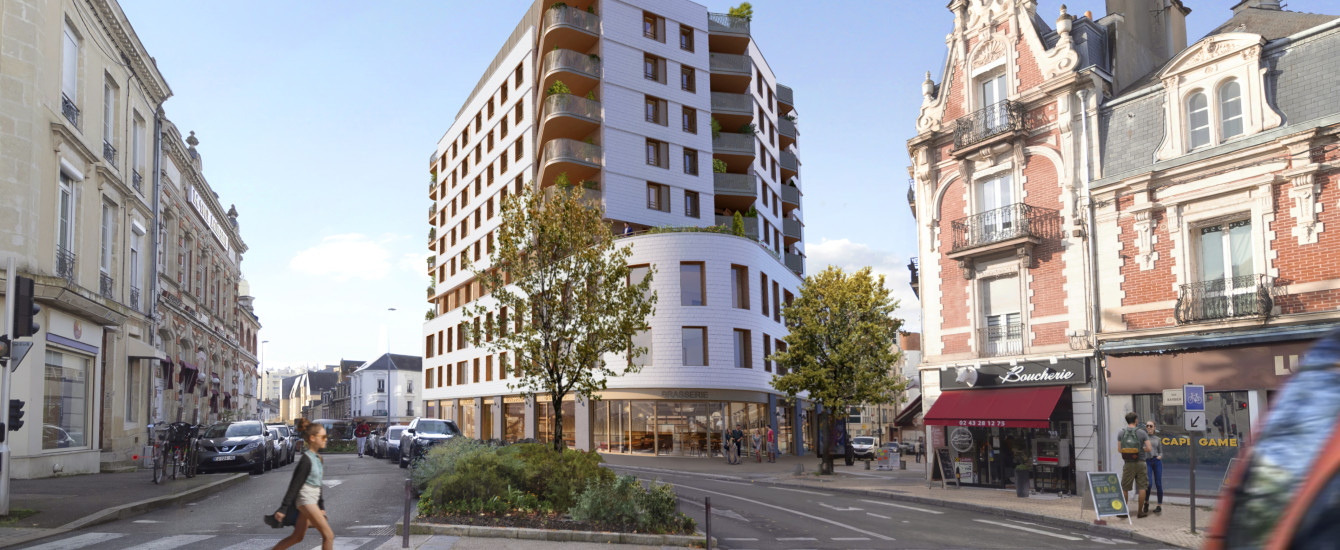 Le 13 décembre 2023, nous avons démarré la commercialisation de la résidence "Originale", un ambitieux projet de requalification des anciennes halles du Mans, entrepris avec notre associé nantais Qualytim. "Originale", c'est un vaste ensemble immobilier RE2020 de 8 étages + attique, proposant pas moins de 48 logements de standing.