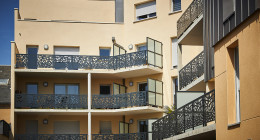 L’immeuble s’est intégré au tissu urbain existant en recréant par une rythmicité de façade, la régularité de la rue. En décrochés successifs sur la rue et sur l’arrière, les 5 étages disparaissent au fur et à mesure pour ne conserver que les premiers niveaux dans le champ du visuel. Ceci permet à la résidence de ne pas être imposante aux yeux des passants et des occupants, mais aussi de libérer au fur et à mesure que l’on s’élève des vues sur les cascades de terrasses mises en œuvre.